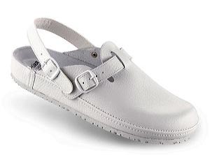 Berufsschuhe Tiefbettform Zertifiziert nach EN 20347:2004 Optimale Bodenhaftung und Komfort Fersenpolster Vollnarbiges Rindleder Flexible Einstellmöglichkeiten Rahmenverkleidung schützt das Fußbett Rutschhemmende und antistatische Spezialsohle Größe: 35-48 Farbe: weiß Preis: 1.1420.01.14 (Grösse 35-40): 53,00 € zzgl. Mwst. 1.1320.01.14 (Grösse 41-48): 56,00 € zzgl. Mwst.
